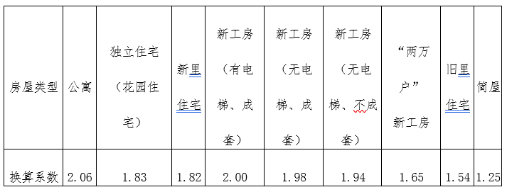 承租的公有居住房屋,以租用公房凭证所记载的建筑面积为准;租用公房凭证记载的是居住面积的,按下表所列的换算系数计算建筑面积:
