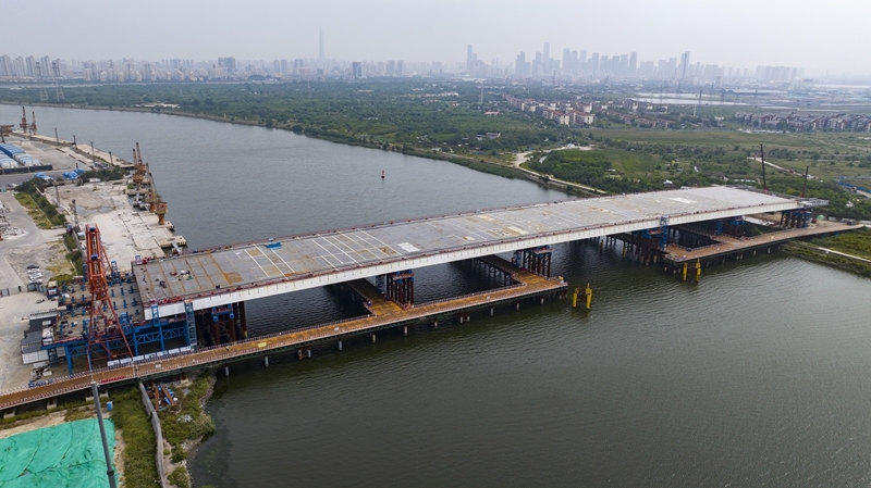 当日,由中铁十八局承建的天津市滨海新区西中环快速路跨海河桥最终一节钢箱梁稳稳落到规划方位,标志侧重达12500吨的主桥钢箱梁顶推就位,工程建造获得重要打破。